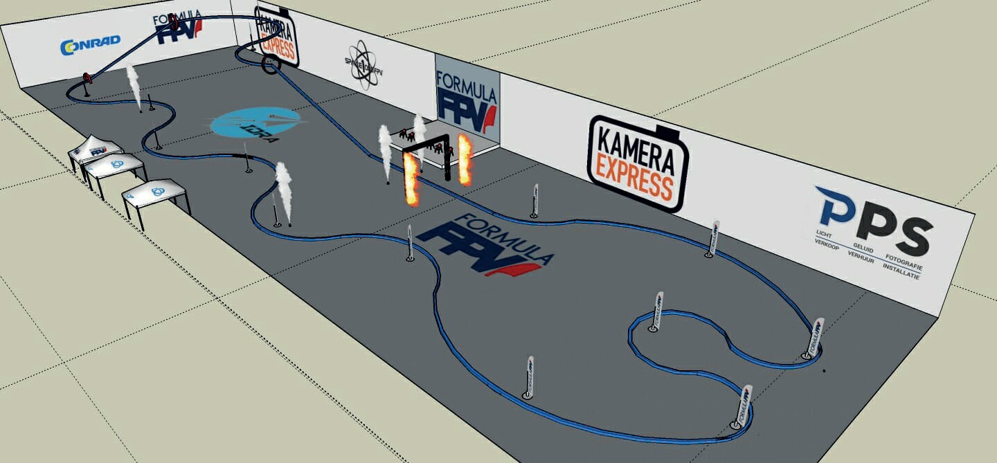 В закрытых помещениях для FPV соревнований могут использоваться специально оборудованные здания, полигоны, ангары, а также спортивные комплексы, где могут быть созданы индивидуальные трассы и