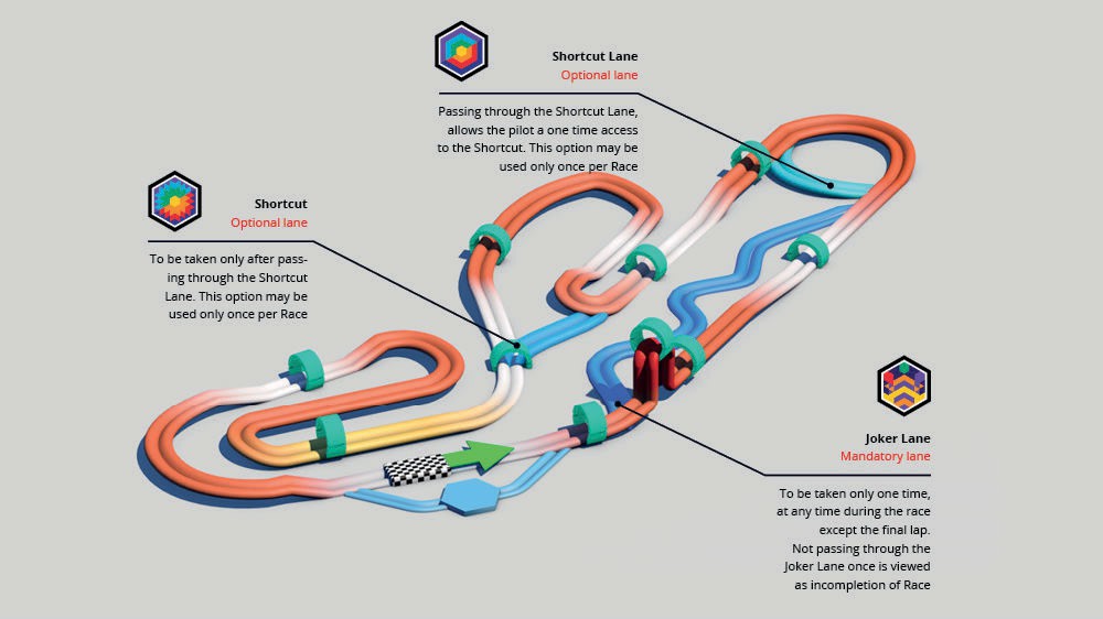 Разнообразие элементов трассы могут включать в себя различные препятствия и элементы, такие как: ворота, обрушенные деревья, камни, стены, туннели и другие объекты, чтобы создать сложные задачи для пилотов по маневрированию дроном.