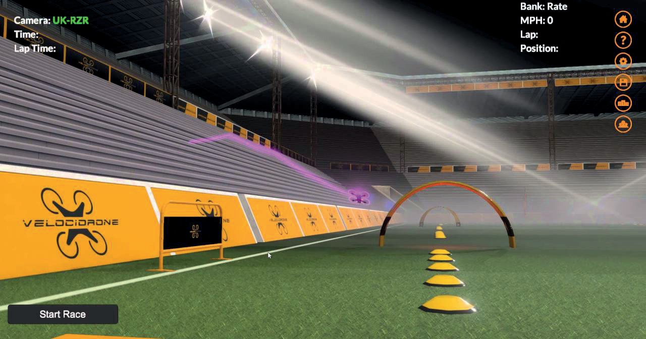VelociDrone — это популярный симулятор FPV дронов, который предлагает различные трассы и режимы гонок для пользователей. В VelociDrone можно проводить гонки с другими игроками онлайн или тренироваться на трассах в одиночку (Рис. 3.22).