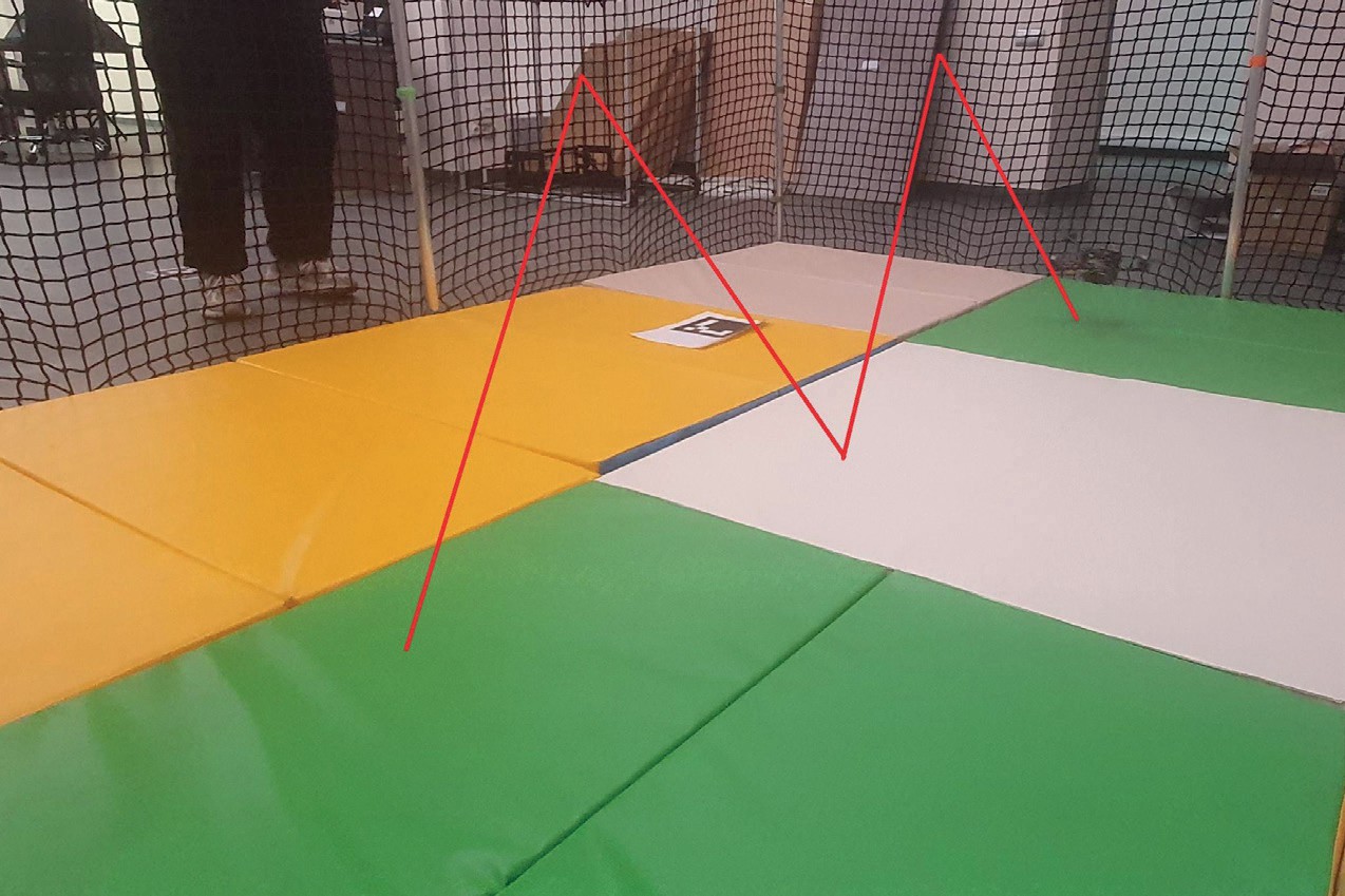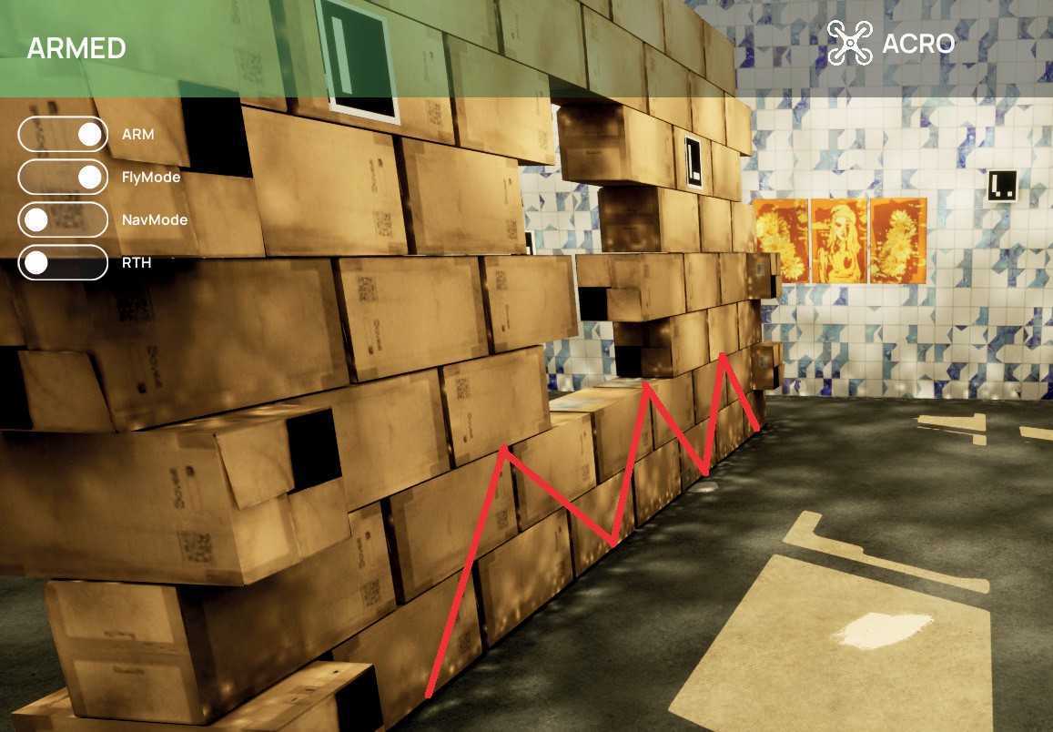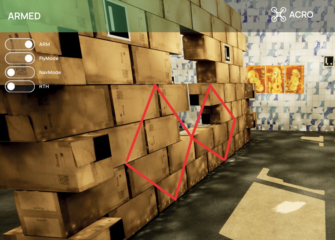Переключаемся в FPV режим (Подробнее во вкладке «Настройки» → «Управление»). Управляя стиками Pitch, Yaw пролетите заданную траекторию.