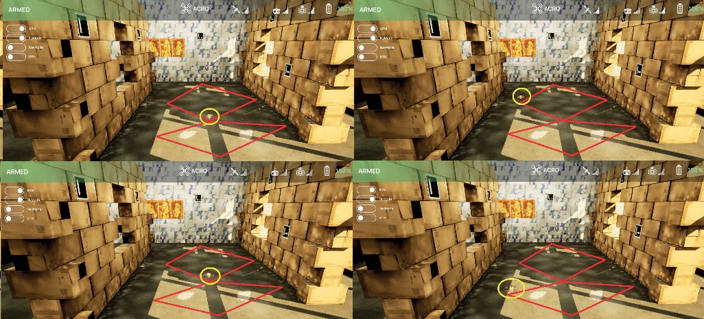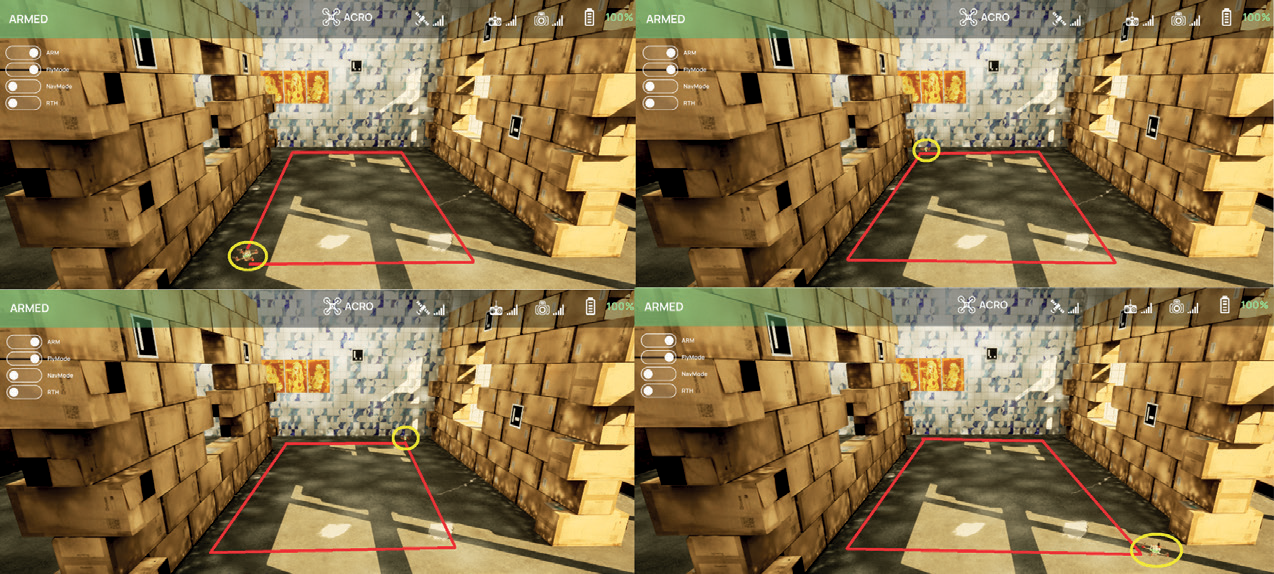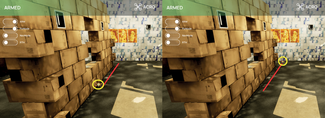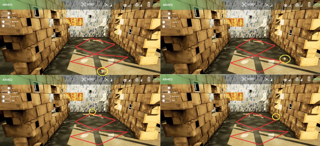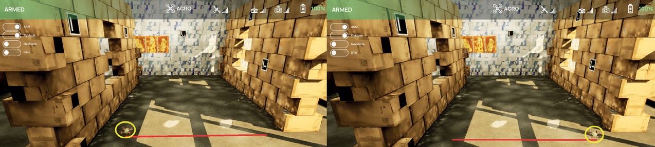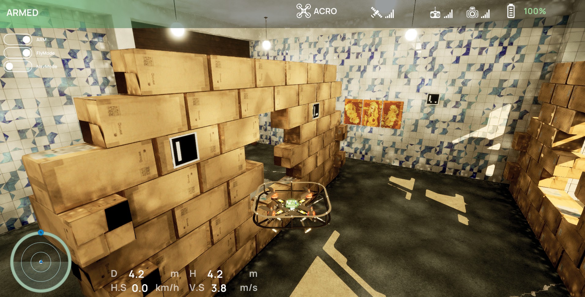 Переключаемся в FPV режим (Подробнее во вкладке «Настройки» → «Управление»). Управляя стиками Pitch, Yaw пролетите заданную траекторию.