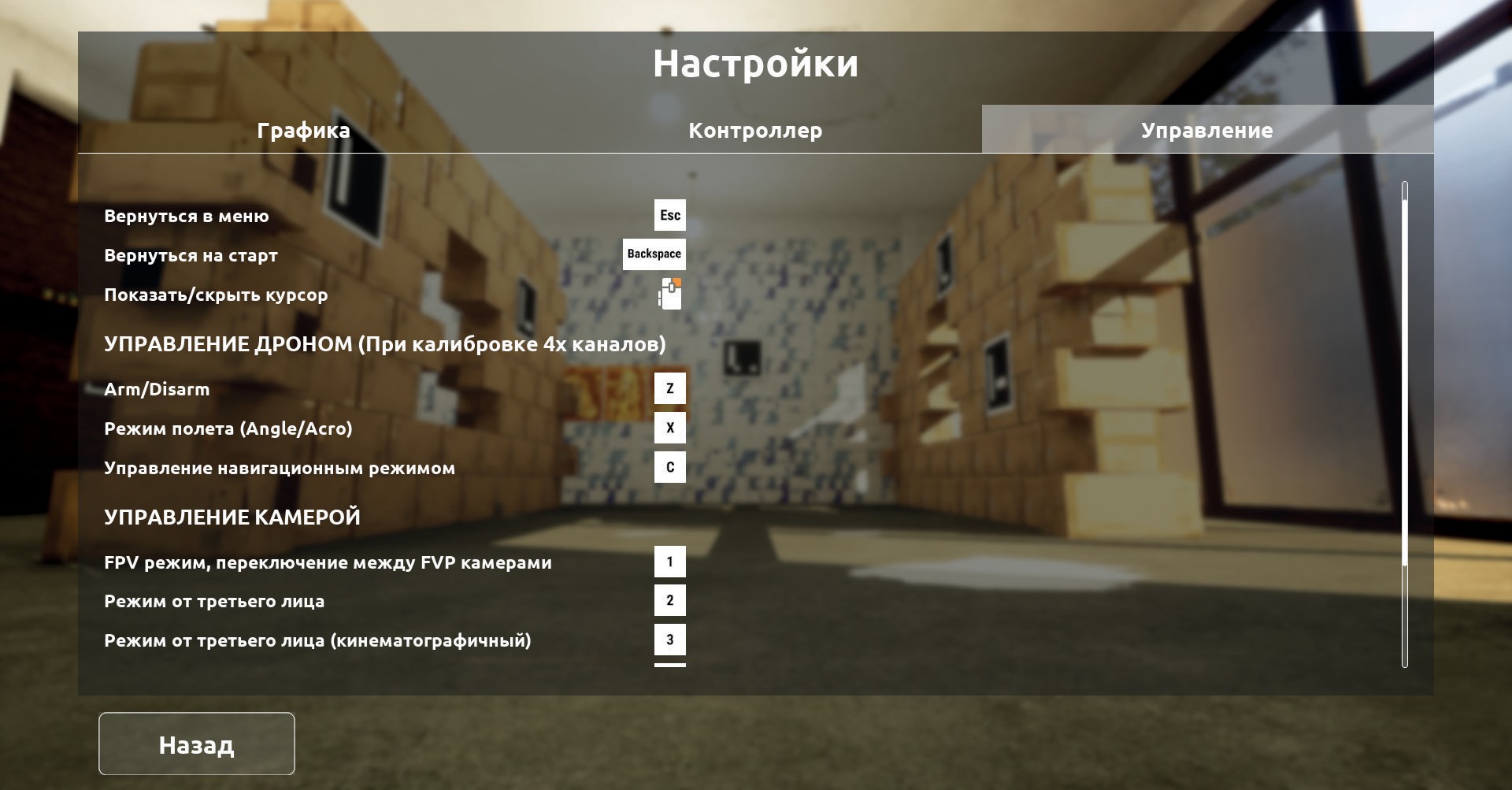 Для смены режима полета требуется активировать кнопку, закрепленную за FlyMode, или нажав на соответствующую клавишу.