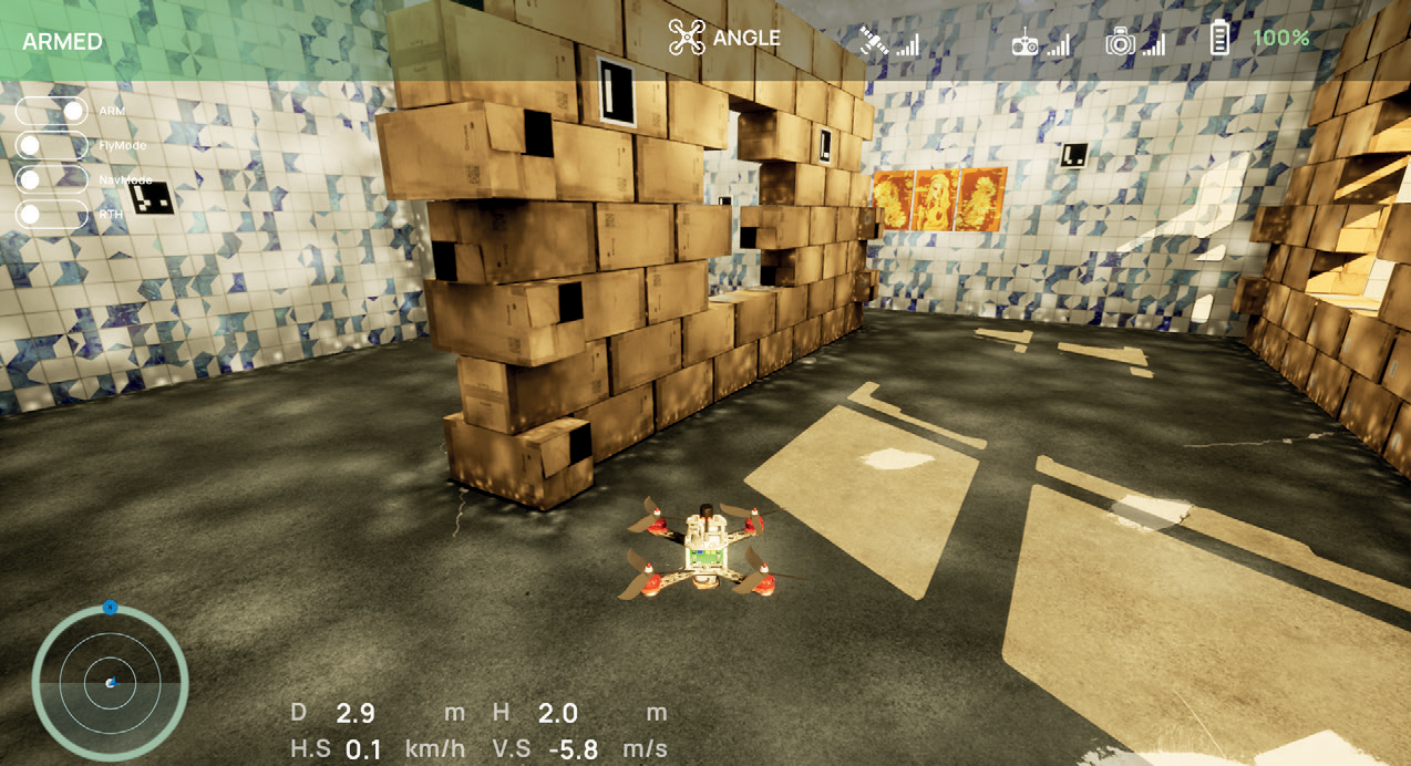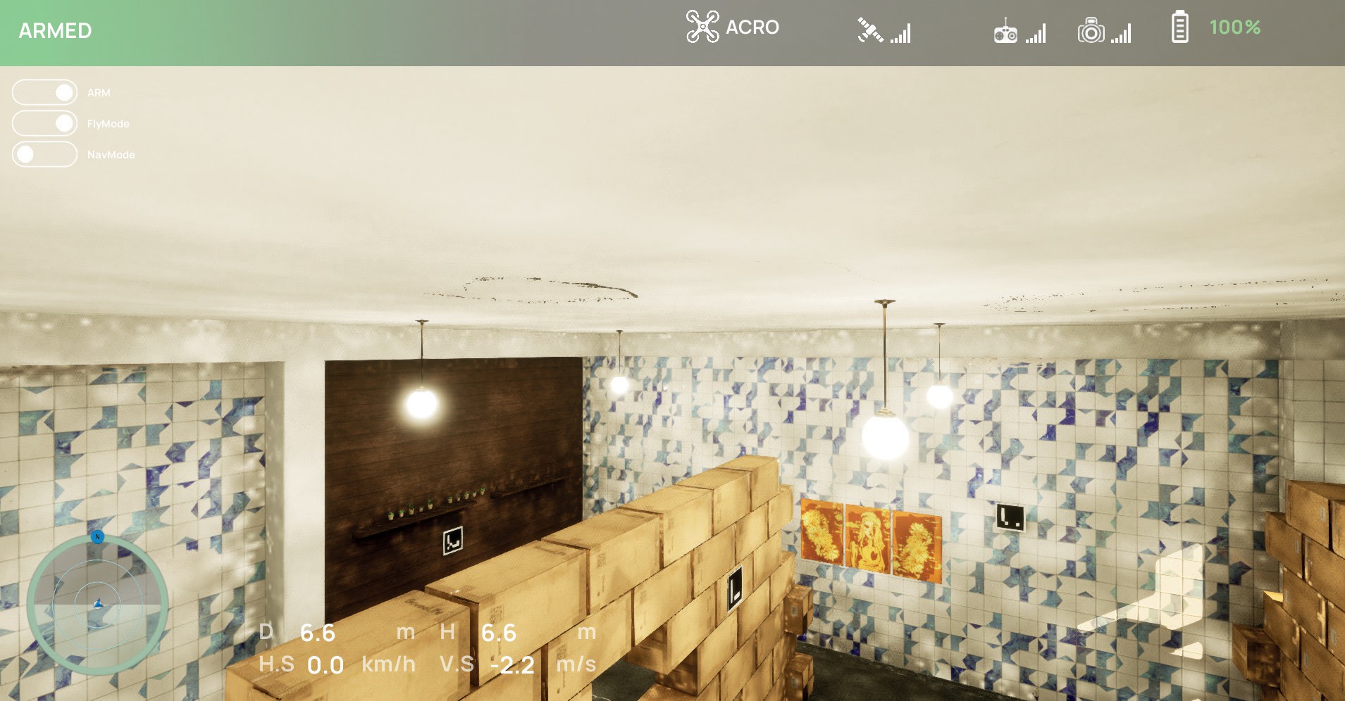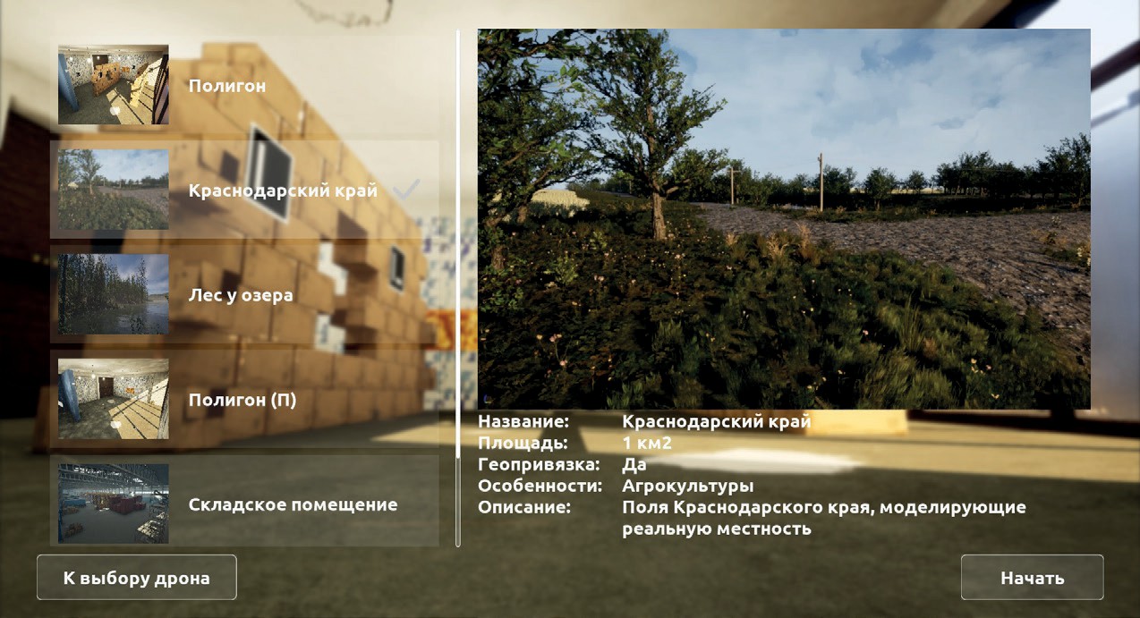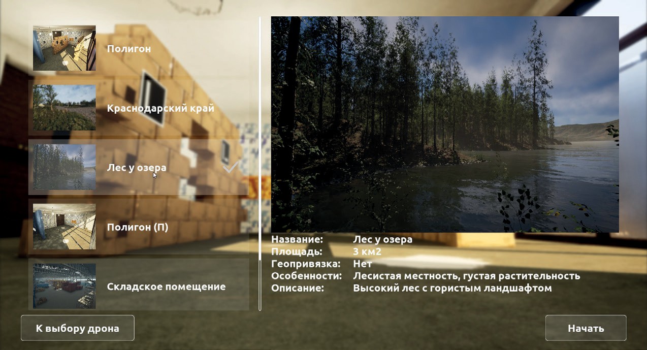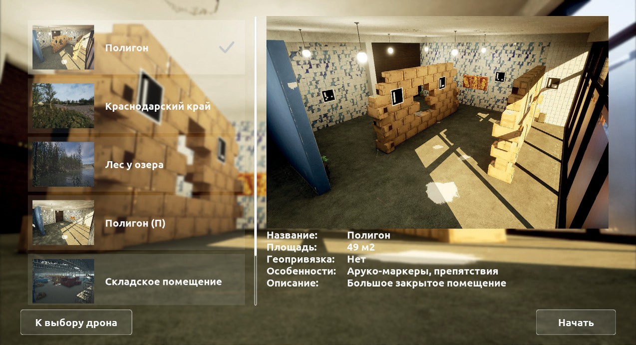 После выбора дрона и карты пользователь попадает в среду симуляции.